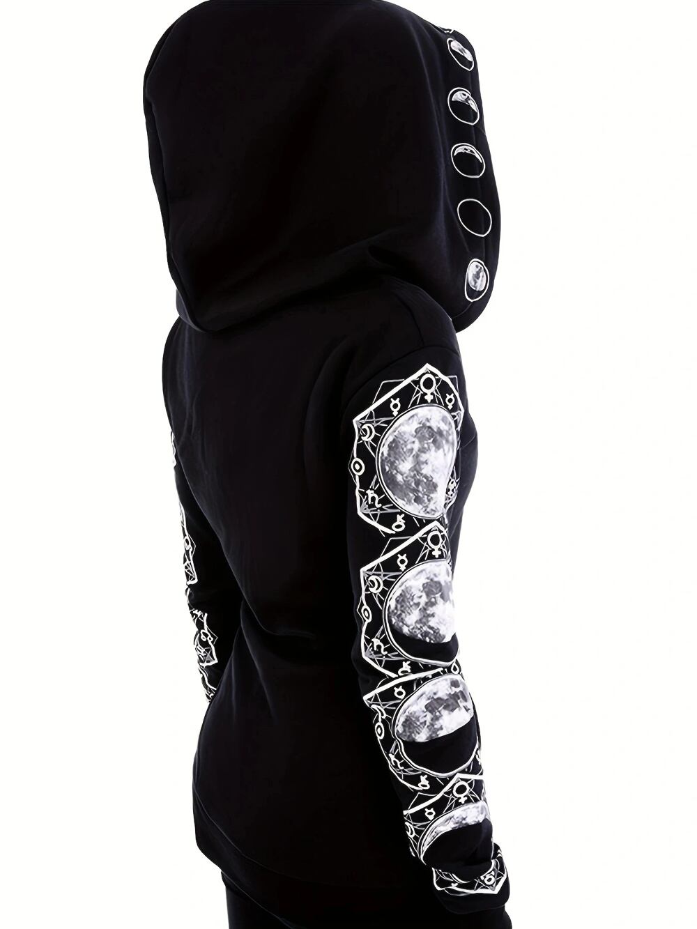 女性のゴシックムーンパーカー、フロントポケット付きオールシーズンのジップアップ、快適なポリエステルブレンド、幾何学模様、y2k パーカー ジャージ y2k T240908201843_01