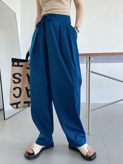 韓国ファッションレディースロング丈ズボンモップパンツ青い薄手ロング丈ズボン人気スラックスパンツスーツ福袋