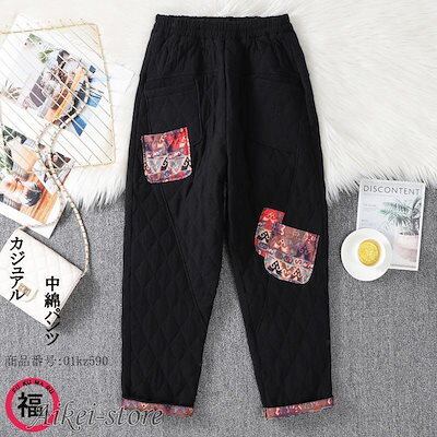 サルエルパンツ 中綿パンツ 刺繍 厚手 ズボン ボトムス テーパードパンツ レディース 大きいサイズ バルーンパンツ ゆったり 無地 カジュアル 着痩せ 秋冬