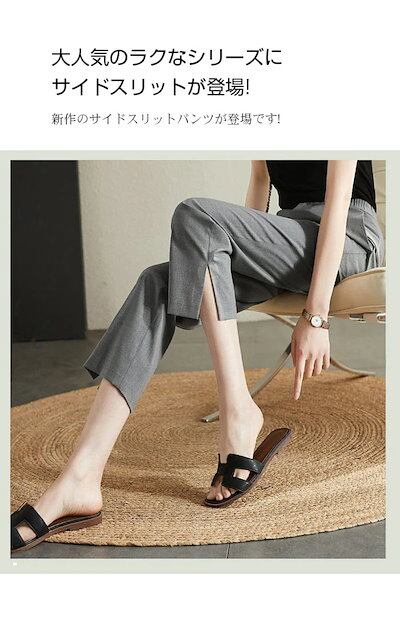 テーパードパンツ レディース フォーマル イージーパンツ スリット スラックス パンツ ビジネス オフィス ボトムス クロップドパンツ きれいめ サブリナパンツ 綿 美脚 ストレートパンツ 速攻美脚