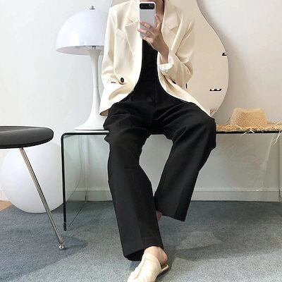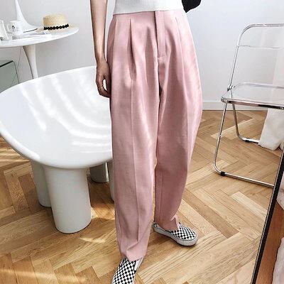 レディースモップパンツ黑白薄手ロング丈ズボン皺防止肌にやさしい美腿合わせやすい人気スラックススーツ接触冷感ボトムス