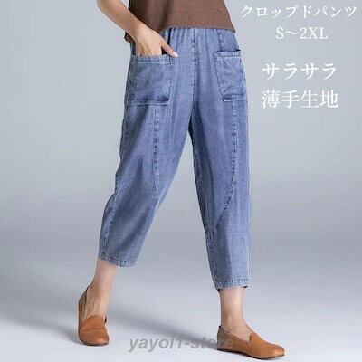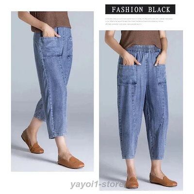 サルエルパンツ レディース デニム クロップドパンツ テーパード アメカジ ズボン ウェストゴム ゆったり 大きい 体型カバー リラックス ボトムス 春 夏 秋コー