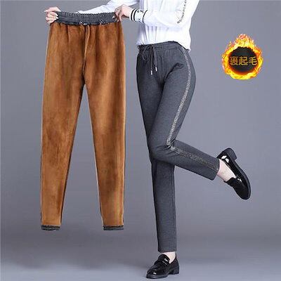 レディーステーパードパンツ裏起毛極暖あったかい防寒脚ゴムウエスト九分丈暖パンフリース着やせ細身ハールーン風保温