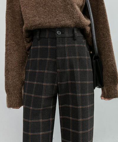 ボトムス センタープレス テーパード アンクル丈 チェック柄 ハイウエストパンツ カジュアル 秋冬 おすすめ レディース オシャレ トレンド 人気 プチプラ 韓国ファッション