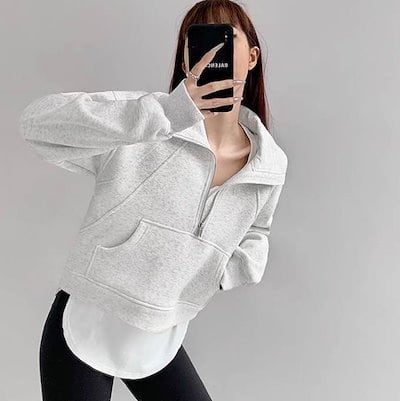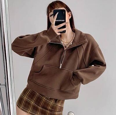 プルオーバー パーカー 長袖 フェミニン ストリート レディース ポケットハーフジップ フード付き 大人可愛い きれいめ シンプル カジュアル レトロ ラフ メンズライク マニッシュ ボーイッシュ ス