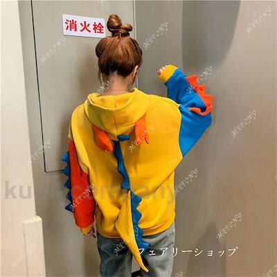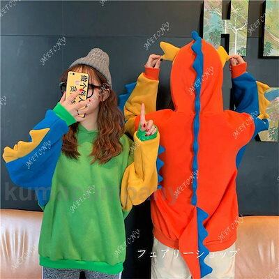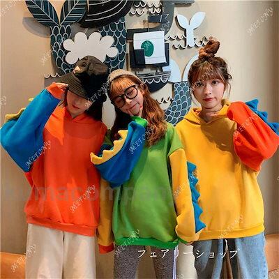 レディース メンズ 男女兼用 トップス パーカー 長袖 恐竜 アニマル 可愛い 多彩 プルオーバー キャンデー色 かわいい フード付き 長袖Tシャツ 春 秋 袖リブ ル