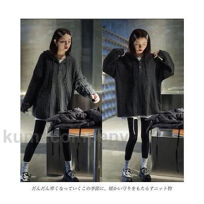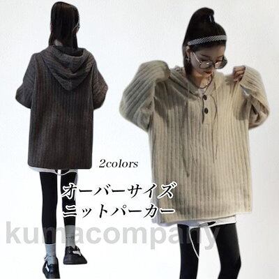 ニットパーカー レディース ニットセーター フード付き オーバーサイズ ニット セーター ドロップショルダー 重ね着風 ニットトップス プルオーバー