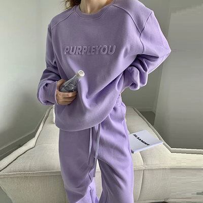 2枚購入で 2oo円FF!24新作 シンプル スウエット 裏起毛 セットアップ レディース レディースファッション Tシャツ トップス ワイドパンツ 二点セット 大きめサイズ