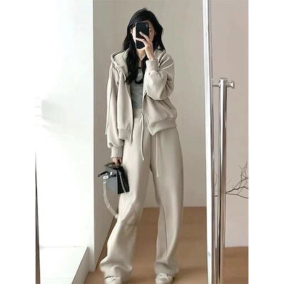 2枚購入で 2oo円FF!新作 カジュアル セットアップ レディース 裏起毛 厚手 運動 パーカー スウェット ワイドパンツ 二点セット 着痩せ 大きいサイズ 裏起毛ファッション