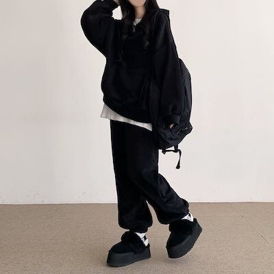 24新作 シンプル スウエット 裏起毛 厚手 セットアップ レディース レディースファッション パーカー トップス ワイドパンツ 二点セット 大きめサイズ