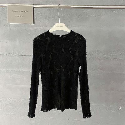 カットソー レース レースカットソー レディース トップス インナー 長袖インナー スーツインナー ロングTシャツ ロンT レース クルーネック 長袖 重ね着 レイヤード 小顔 体型カバー カジュア