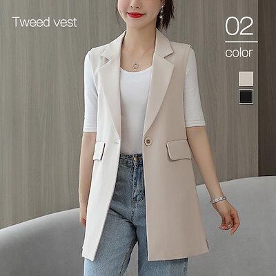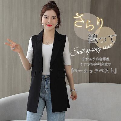 ジレ レディース フォーマル 春夏 前開き ベスト ロングベスト チュニック丈 テーラード テーラードベスト スーツベスト 羽織り ノースリーブ 大人 無地 きれいめ ビジネス 通勤 お洒落 デイリ