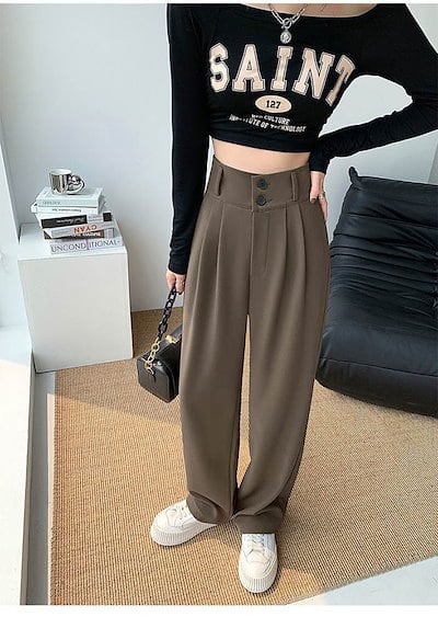 ストレートパンツ レディース ワイドパンツ スーツパンツ ロングパンツ 無地 ウエストゴム 長ズボン ハイウエスト 落ち感 カジュアル ボトムス シンプル オフィス 体型カバー おしゃれ 着回し 通