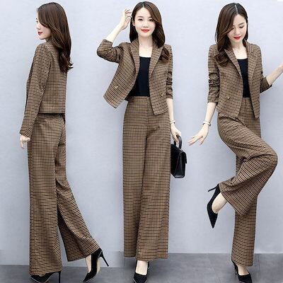 2024秋新作 ス一ツ文化祭 学園祭韓国ファッション チェック 長袖 スーツ+ズボン パーカー スウェット 上下セット 大きいサイズ ア ップ フード付きアウター無地 スウェットパンツ レディ