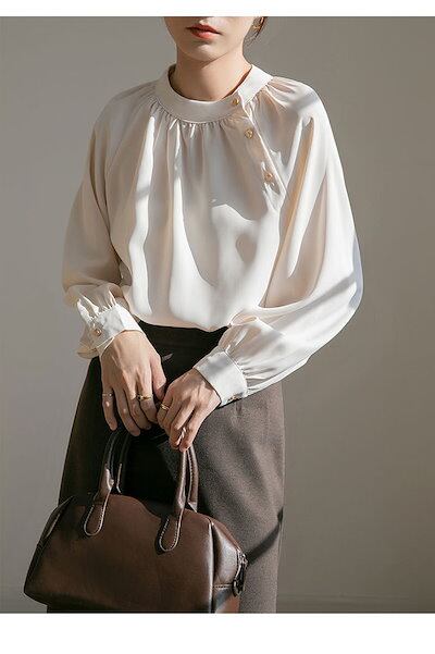 ブラウス レディース 長袖 白ブラウス 襟フリル 無地 シャツブラウス トップス スーツインナー バンドカラー お洒落 可愛い カジュアル フォーマル オフィス エレガント シンプル オフィスカジュア