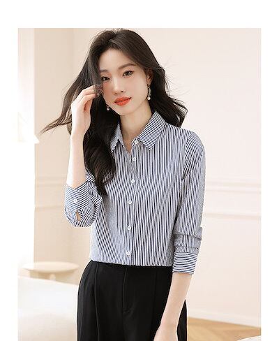 シャツ レディース 長袖 ブラウス ストライプ シャツブラウス オフィスカジュアル ストライプ柄 春秋 通勤 オフィス OL おしゃれ ゆったり オシャレ スーツインナー ベーシック 定番 大人 フォ