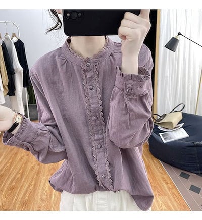 ブラウス レディース シャツ 長袖 シャツブラウス レース 白ブラウス バンドカラー ブラウスチュニック 綿混 トップス 無地 前開き スーツインナー お洒落 可愛い カジュアル オフィス 無地 シン