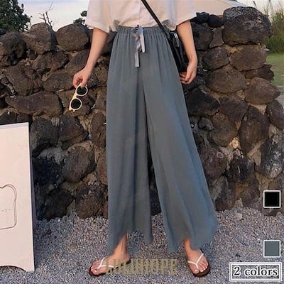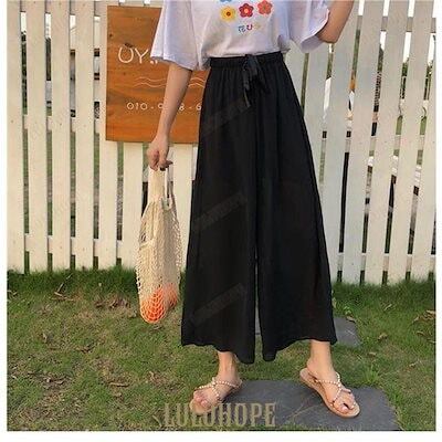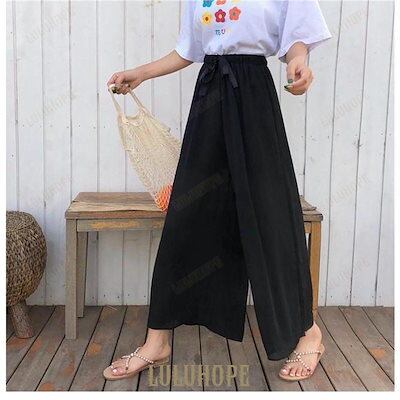 イージーパンツ レディース シフォンパンツ 夏 ワイドパンツ ウエストゴム ガウチョパンツ 薄手 バギーパンツ シフォン ゆれゆれ 九分丈パンツ
