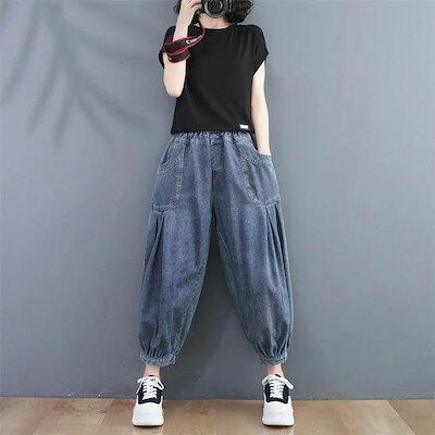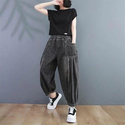 レディースパンツデニム春夏バルーンパンツレディースパンツデニムサーカスパンツ大きいサイズあったかバギーパンツデニムパンツバルーンウエ