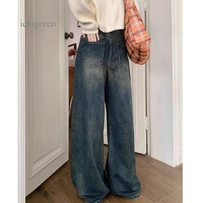 デニムパンツ ロング ワイド バギー フレア 太め ゆったり レディース 韓国ファッション シンプル 大きいサイズ ヒップホップ ルーズ 体型カバー