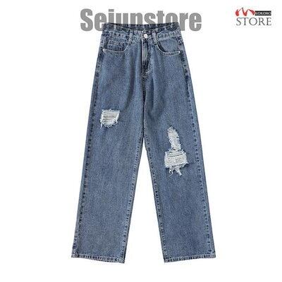 バギーパンツ ワイドパンツ ジーンズ ロング丈 デニムパンツ レディース ダメージ加工 ウォッシュ ク 春夏