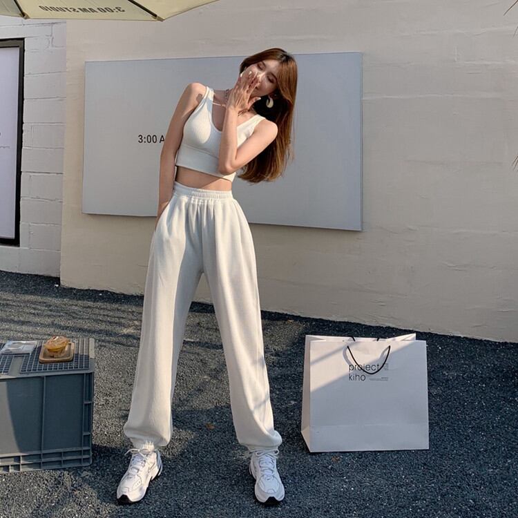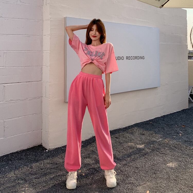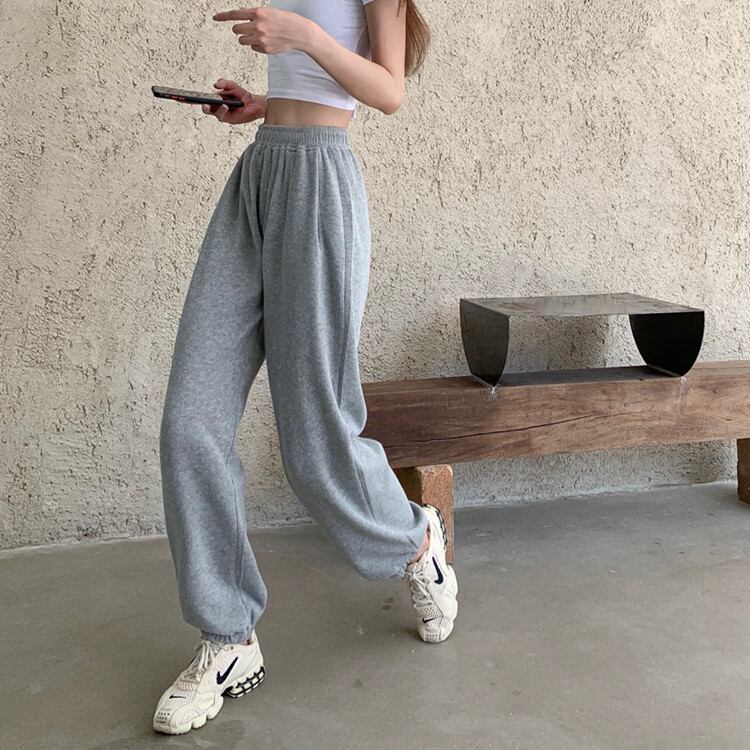 雑誌やSNSで話題 大人気 カジュアル 色 ハイウエストストレート薄い ゆったりする スウェットパンツ